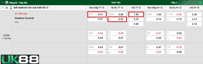 Kèo chấp của nhà cái UK88 đã đưa ra là chủ nhà AZ Alkmaar sẽ có kèo chấp đối với đội khách Shakhtar Donetsk trong khoảng từ -0.25 đến -0.75 bàn. Với kèo chấp đã có thì AZ Alkmaar sẽ phải đánh bại được Shakhtar Donetsk thì sẽ ăn kèo Châu Á. Mục tiêu của AZ Alkmaar đặt ra còn lớn hơn so với kèo đấu này khi họ cần có chiến thắng với cách biệt ít nhất 3 bàn. Nguyên nhân vì AZ Alkmaar đang để cho Shakhtar Donetsk dẫn trước 3 bàn ở trận lượt đi. AZ Alkmaar với lợi thế thi đấu trên sân nhà AFAS Stadion sẽ có sự đồng hành của người hâm mộ và thi đấu hết sức mình. Do đó, người chơi nên lựa chọn AZ Alkmaar chấp kèo đối với Shakhtar Donetsk.