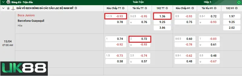 Kèo chấp của nhà cái UK88 đã đưa ra là chủ nhà Boca Juniors sẽ được hưởng kèo chấp bởi đội khách Barcelona Guayaquil trong khoảng từ -1.0 đến -1.5 bàn. Với kèo chấp đã có, Boca Juniors ở cửa trên sẽ cần có chiến thắng với cách biệt ít nhất 2 bàn trước Barcelona Guayaquil thì sẽ ăn kèo Châu Á. Với đẳng cấp thi đấu vượt trội thì Boca Juniors hoàn toàn đủ khả năng để thực hiện được điều đó. Bên cạnh đó, Boca Juniors sở hữu lợi thế thi đấu trên sân nhà La Bombonera với sự tiếp sức của người hâm mộ. Cộng thêm thành tích đối đầu áp đảo của Boca Juniors trước Barcelona Guayaquil trong quá khứ. Do đó, người chơi nên lựa chọn Boca Juniors chấp kèo đối với đội khách Barcelona Guayaquil.