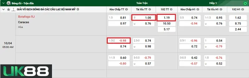 Kèo nhà cái Botafogo RJ vs Caracas hôm nay, 05h00 ngày 10/4/2026 (UK88)