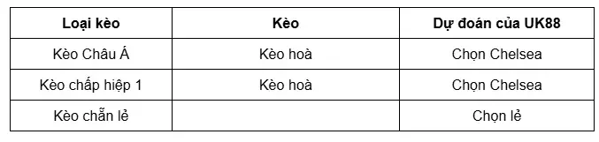 Tỷ lệ kèo châu Á: Chelsea có kèo hoà với Brighton. Lựa chọn: Chelsea. Dự đoán tỉ số chung cuộc: Brighton 1-2 Chelsea.