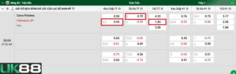 Kèo nhà cái Cerro Porteno vs Palmeiras SP hôm nay, 07h30 ngày 30/4/2026 (UK88)