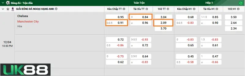 Kèo chấp của nhà cái UK88 đã đưa ra là chủ nhà Chelsea sẽ hưởng kèo chấp bởi đội khách Manchester City từ -0.25 đến -1.0 bàn. Với kèo chấp khá nhẹ, Manchester City cần phải đánh bại được chủ nhà Chelsea thì ăn mọi mức kèo Châu Á. Đây là một thử thách không quá khó cho Manchester City vì chủ nhà Chelsea đang có phong độ thi đấu không hề tốt. Dù phải làm khách tại Stamford Bridge nhưng đây là nơi ưa thích của Manchester City khi toàn thắng với cách biệt 2 bàn trước Chelsea trong 2 lần gần nhất. Do đó, người chơi nên tin tưởng và đặt cược vào cửa Manchester City chấp kèo trước Chelsea ở trận đấu này.