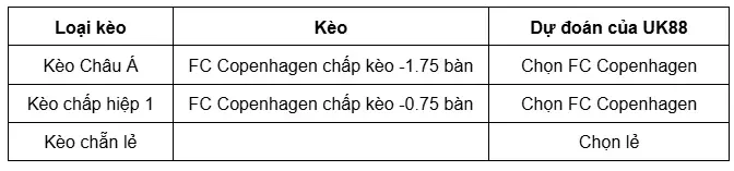 Lựa chọn của chuyên gia: FC Copenhagen thắng.