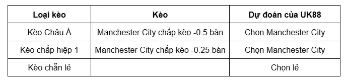 Kèo chấp của nhà cái UK88 đã đưa ra là chủ nhà Manchester City chấp kèo đội khách Arsenal trong khoảng từ -0.25 đến -0.75 bàn. Với kèo chấp nhẹ nhàng thì Manchester City cần có được chiến thắng trước Arsenal để cửa trên thắng kèo. Manchester City có khả năng khá cao để thực hiện được điều đó. Bởi lợi thế sân nhà Manchester Stadium giúp cho Manchester City có được sự chủ động và tự tin cùng màn thể hiện tốt nhất. Bên cạnh đó, Manchester City có phong độ khá tốt, trong khi Arsenal đang có dấu hiệu hụt hơi. Do đó, người chơi nên lựa chọn cửa chủ nhà Manchester City chấp kèo là khá an toàn.