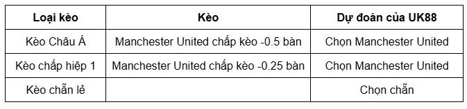 Tỷ lệ kèo hiệp 1: Manchester United chấp kèo -0.25 bàn. Lựa chọn: Manchester United.