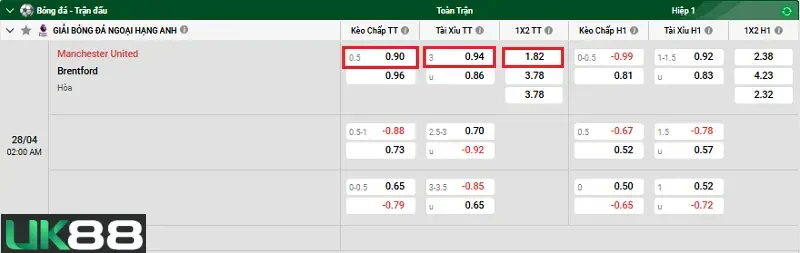Kèo chấp của nhà cái UK88 đã đưa ra là chủ nhà Manchester United chấp kèo đội khách Brentford trong khoảng từ -0.25 đến -0.75 bàn. Với kèo chấp đã có thì Manchester United sẽ hướng đến ít nhất một chiến thắng trước Brentford để cửa trên thắng kèo Châu Á. Manchester United ở thời điểm hiện tại tỏ ra vượt trội hoàn toàn trước Brentford. Bên cạnh đó, Manchester United được thi đấu trên thánh địa Old Trafford với hàng vạn cổ động viên nhà. Do đó, người chơi nên lựa chọn và đặt cược vào cửa chủ nhà Manchester United chấp kèo là khá an toàn.