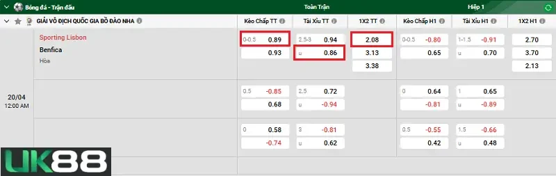 Kèo nhà cái Sporting Lisbon vs Benfica hôm nay, 00h00 ngày 20/4/2026 (UK88)